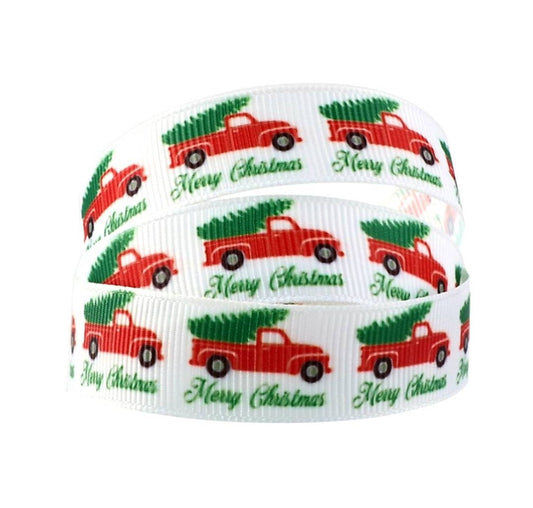 7/8" Christmas Truck Merry Christmas Tree Holiday Ribbon